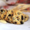 - A l’aide d’un couteau, briser les amandes mondées en éclats et aux ciseaux, couper les cranberries en petits morceaux. Incorporer à la pâte les éclats d’amandes, les morceaux de cranberries et les pépites de chocolat. Bien les répartir dans la pâte.